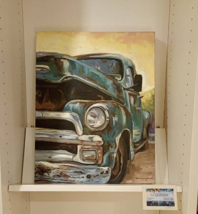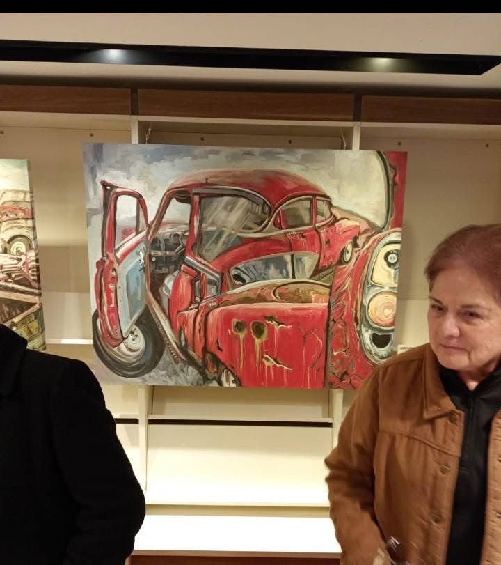 La muestra reúne una serie de obras que retratan automóviles antiguos, piezas que evocan memorias personales y experiencias significativas en la trayectoria de la artista. Cada pintura funciona como un relato visual que conecta el pasado, la identidad y el tránsito emocional de la autora.