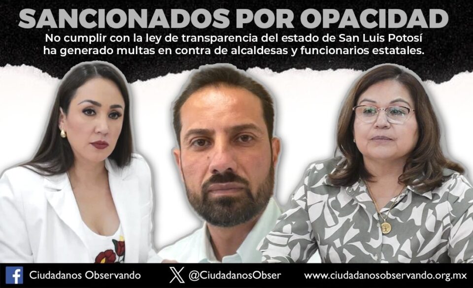 La organización Ciudadanos Observando celebro que, pese a la evidente lentitud y una actitud permisiva, la Comisión Estatal de Garantía de Acceso a la Información Pública (CEGAIP) sí ha impuesto sanciones a diversos servidores públicos por incumplir con la Ley de Transparencia del Estado de San Luis Potosí, como es el caso de las diputadas Brisseire Sánchez y Leticia Vázquez.
