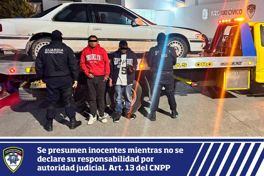 Los oficiales se entrevistaron con el conductor y copiloto, a quienes se les solicitó los documentos que acreditaran la propiedad, misma que no presentaron. Enseguida, se verificó el estatus de la unidad ante el Sistema Único de Información Policial del C4 Municipal, donde se informó que contaba con reporte de robo del pasado lunes 19 de enero, en el Barrio de Tequisquiapan.