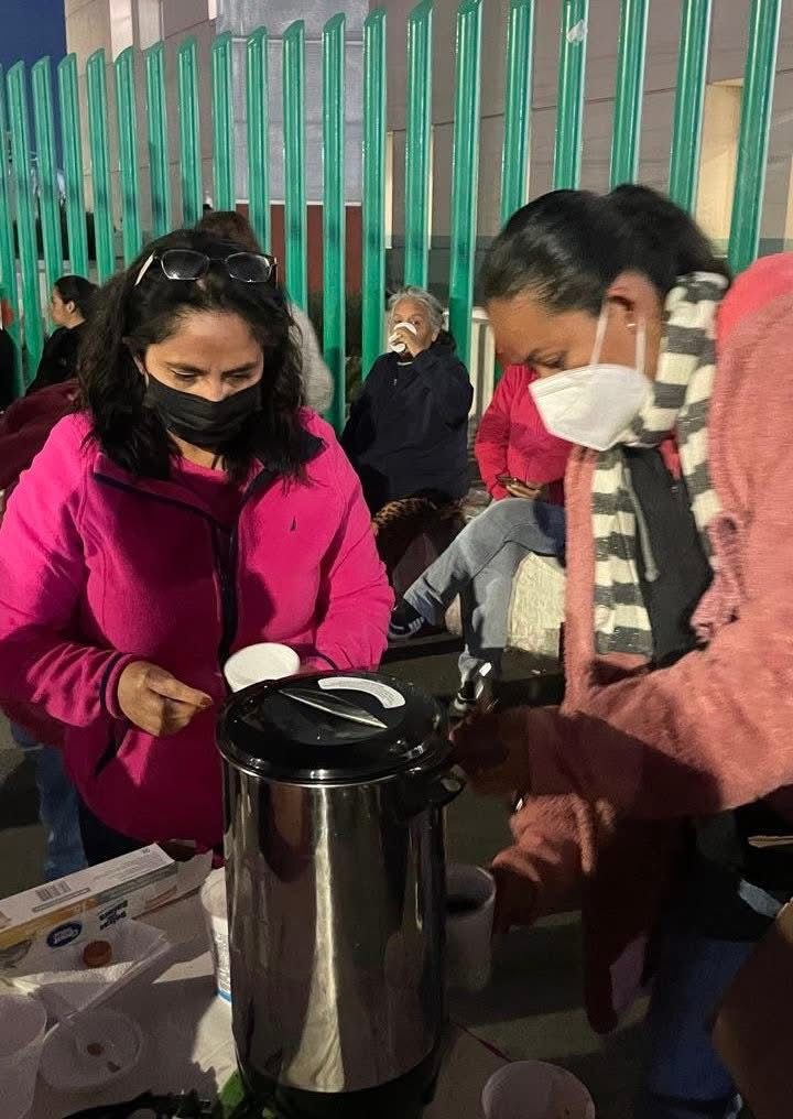 Ante las bajas temperaturas y la difícil situación que enfrentan familiares de pacientes internados en el Hospital Central de San Luis Potosí, integrantes de Mujeres Potosinas Cambiando Vidas A.C. realizaron una jornada solidaria en la que ofrecieron pan y café caliente a personas en situación vulnerable.