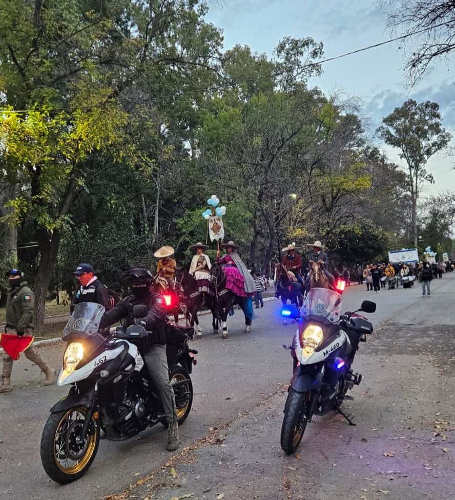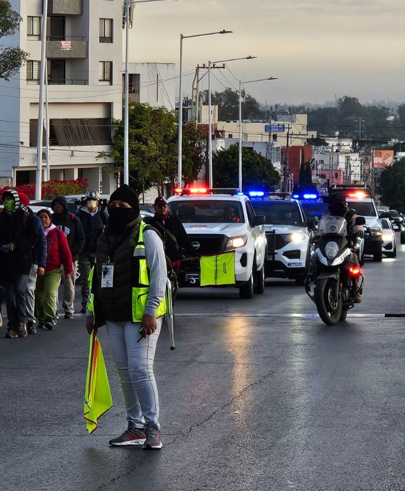 El despliegue contempla labores de abanderamiento y vigilancia durante el trayecto por territorio potosino, a fin de garantizar la seguridad de las y los feligreses que participan en esta manifestación religiosa.
