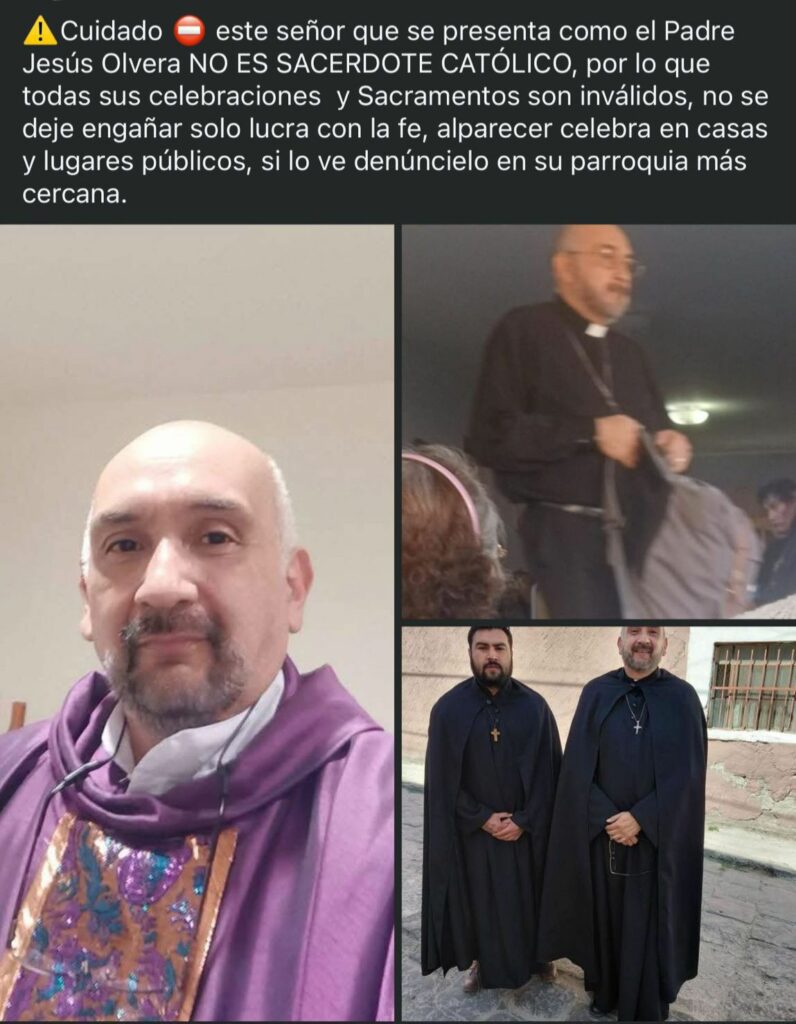 Ciudadanos han emitido una advertencia pública ante la presunta actuación irregular de un hombre identificado como Jesús Olvera, quien se presenta como sacerdote sin contar, según señalamientos, con reconocimiento ni ordenación válida dentro de la estructura eclesiástica.