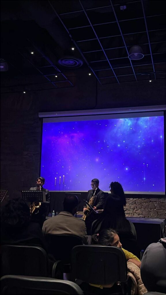 El público disfrutó del espectáculo del mago Ricardo HUD, quien cautivó a niñas, niños y adultos con un show lleno de sorpresa y participación. La velada continuó con la presentación del Cuarteto de Saxofones de la Escuela Estatal de Música, que creó un ambiente envolvente en la Sala de Musas.