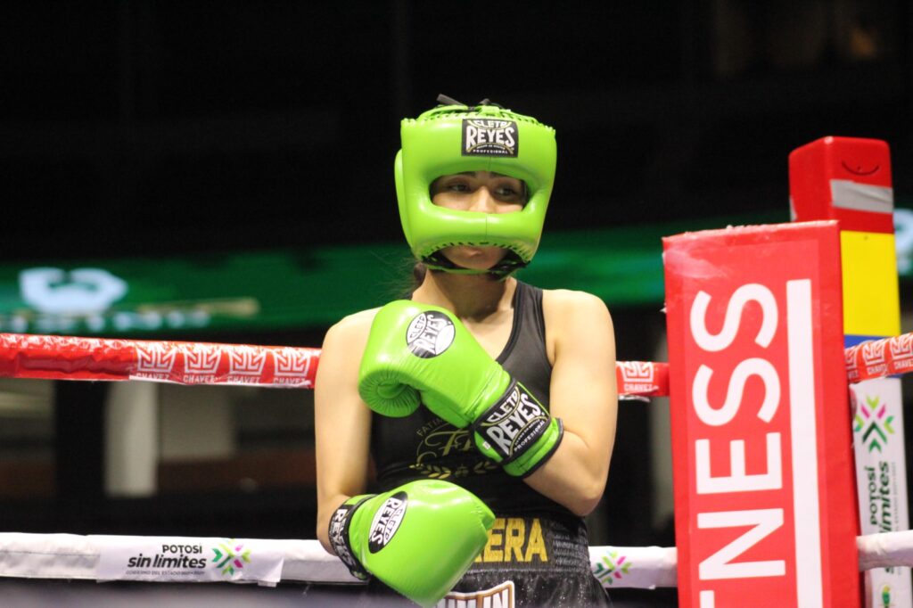 La boxeadora potosina Fátima Patricia Herrera Álvarez, representate de México en la Olimpiada de París lució sus facultades en la función de boxeo celebrada en la Arena Potosí en una pelea de exhibición.