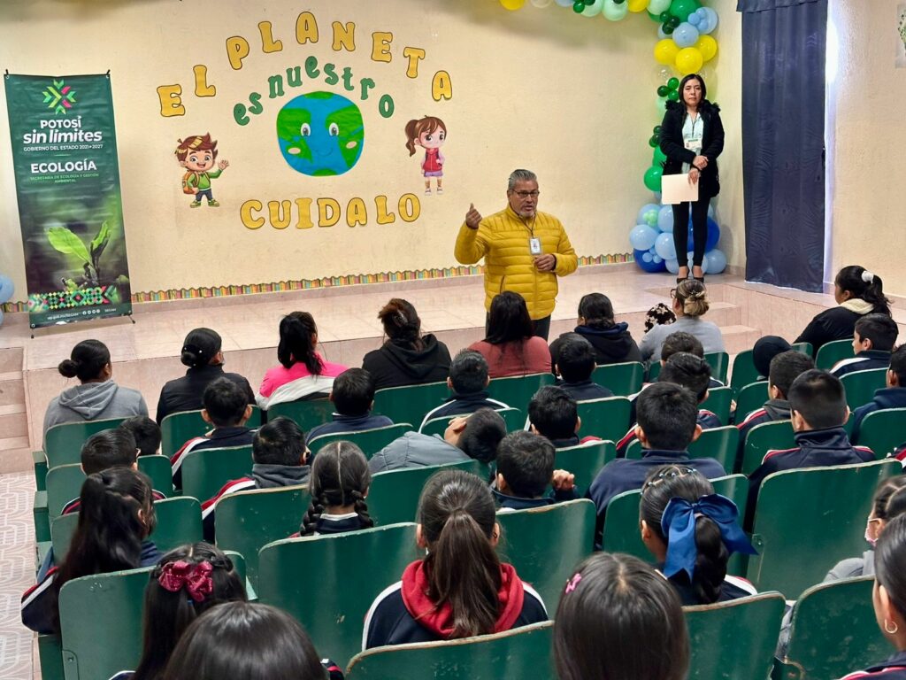 En el marco del Día Mundial de la Educación Ambiental, la Secretaría de Ecología y Gestión Ambiental (Segam) realizó una jornada educativa en la escuela primaria “Niño Artillero”, ubicada en la localidad de Monte Obscuro, en Mexquitic de Carmona. La actividad permitió acercar a la comunidad escolar a prácticas y reflexiones sobre la importancia de proteger sin límites el entorno natural tal como lo ha impulsado el Gobernador Ricardo Gallardo Cardona.