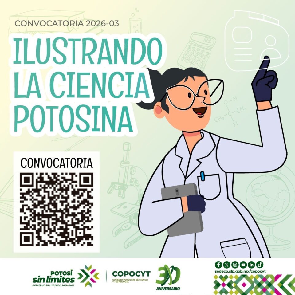 • La convocatoria “Ilustrando la Ciencia Potosina” busca acercar la ciencia a niñas, niños y jóvenes mediante ilustraciones originales, promoviendo el talento creativo y científico.