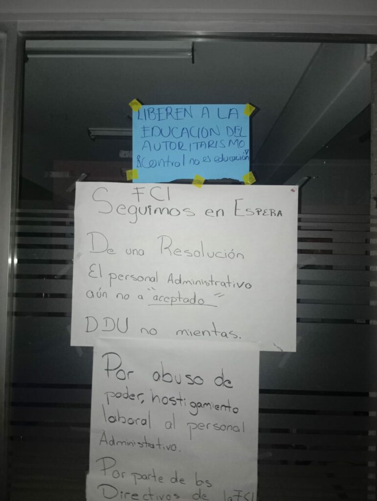 Trabajadores administrativos de la FCI siguen en paro de “brazos caídos”