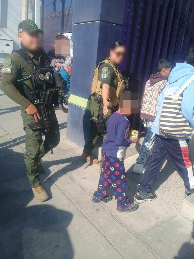 Posteriormente, se trasladó a los menores para su revisión médica, a la comandancia de la GCE, donde nuestros agentes estatales atendieron con calidad y sentido humano a los infantes, donde se preservaron sus derechos y se les brindó alimento.