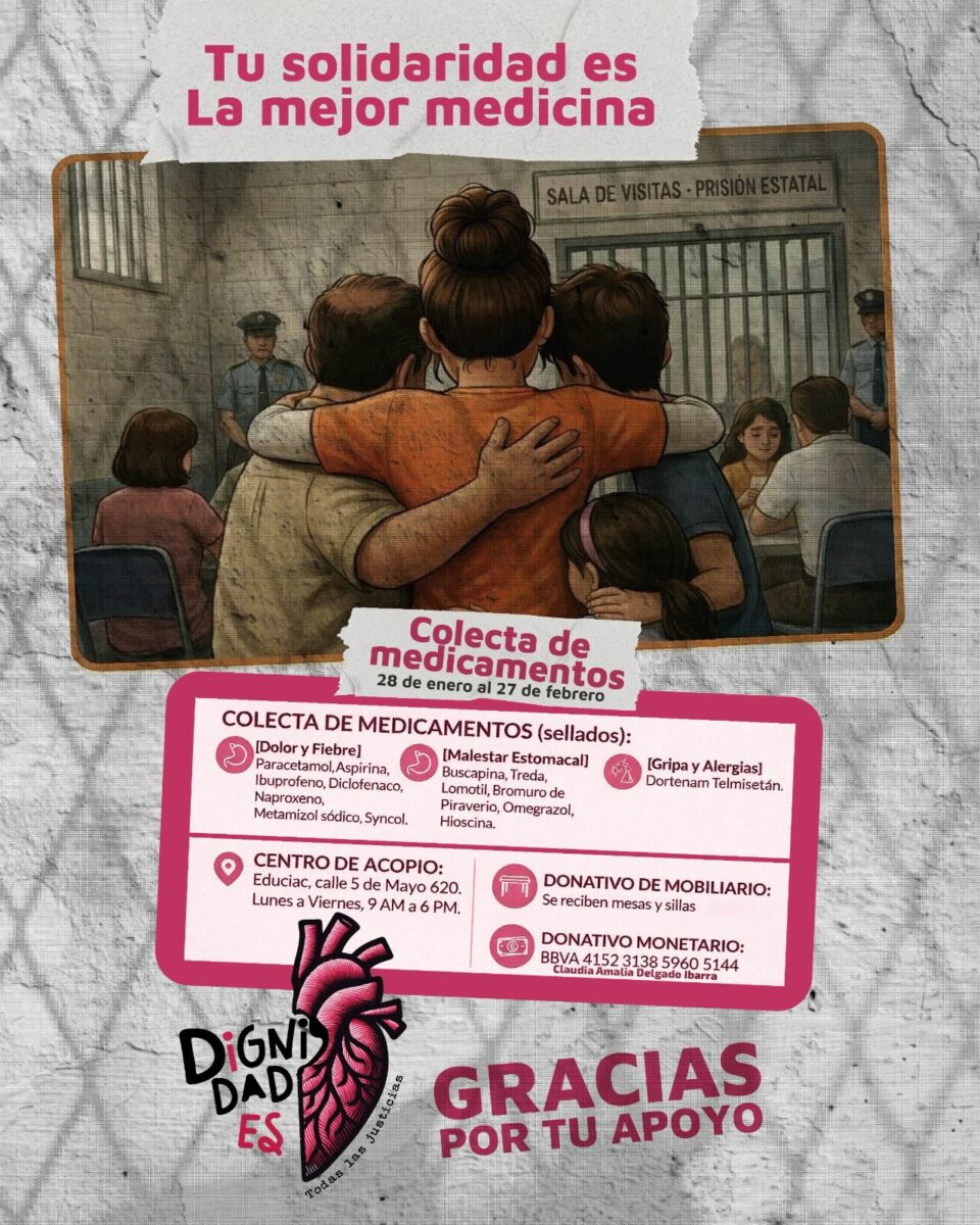 Familias de mujeres privadas de la libertad, junto con la colectiva Dignidades Todas las Justicias, iniciaron una colecta de medicamentos e insumos médicos para apoyar a mujeres privadas de la libertad en el Centro de Reinserción Social de La Pila, ante la falta de acceso a medicamentos básicos dentro del penal.