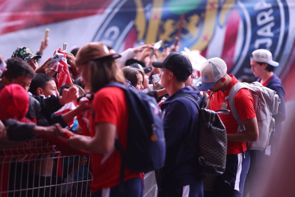 Una multitud de fanáticos del equipo Chivas de Guadalajara se apostó desde muy temprano para recibir al equipo de sus amores: las Chivas Rayadas de Guadalajara.