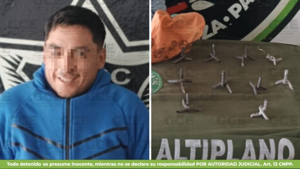 De acuerdo con la información oficial, en un camino de terracería de la comunidad de La Viuda, municipio de Matehuala, fue detenido Mario N., de 21 años de edad, por la presunta posesión de droga y artefactos conocidos como “poncha llantas”, además de tripular un vehículo con reporte de robo. La unidad, una Nissan Kicks, contaba con reporte de robo con violencia del 27 de enero de 2026, en la colonia Del Carmen, en Villa de Guadalupe.