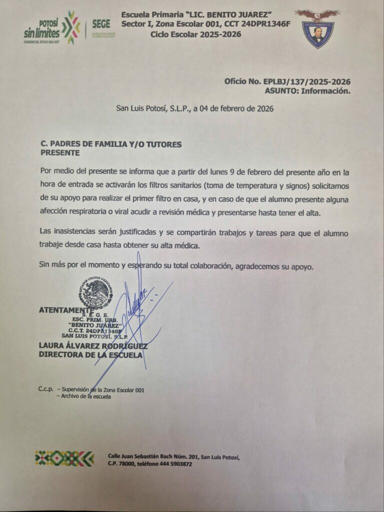 “Afortunadamente son casos aislados, pero estamos en coordinación con la Secretaría de Salud para tomar medidas inmediatas”, señaló luego de que a través de un oficio se alertará a los padres de familia por estos posibles casos de sarampión en una escuela ubicada en la capital potosina.