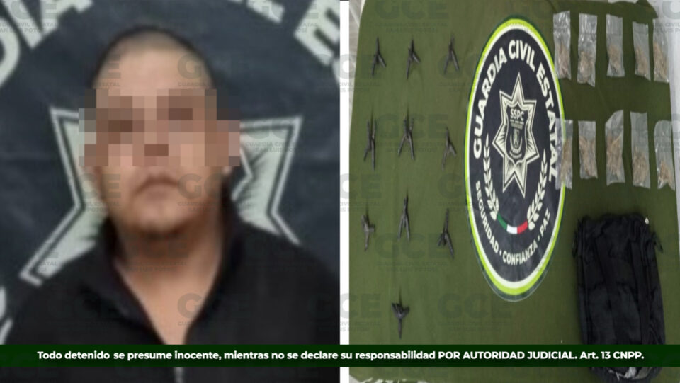 Elementos de la Guardia Civil Estatal realizaron la detención de un hombre por su probable responsabilidad en el delito de posesión de droga, en la colonia Praderas del Río, en el municipio de Ciudad Valles.