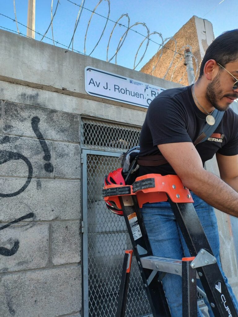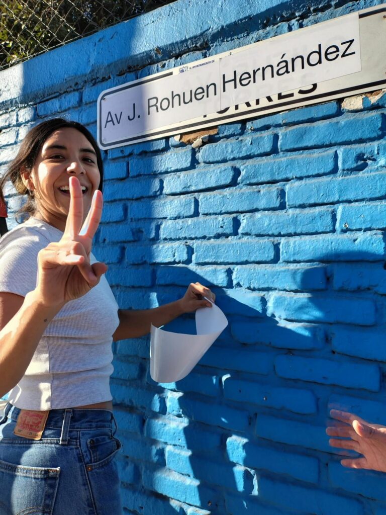 En el lugar se colocaron rótulos con el nombre “Av. J. Rohuen Hernández” sobre señalética existente en distintos puntos de la vialidad, así como mensajes dirigidos a automovilistas, entre ellos uno en el que se lee: “Bájale 30 km/hr por tu seguridad y la de tus hijos”.