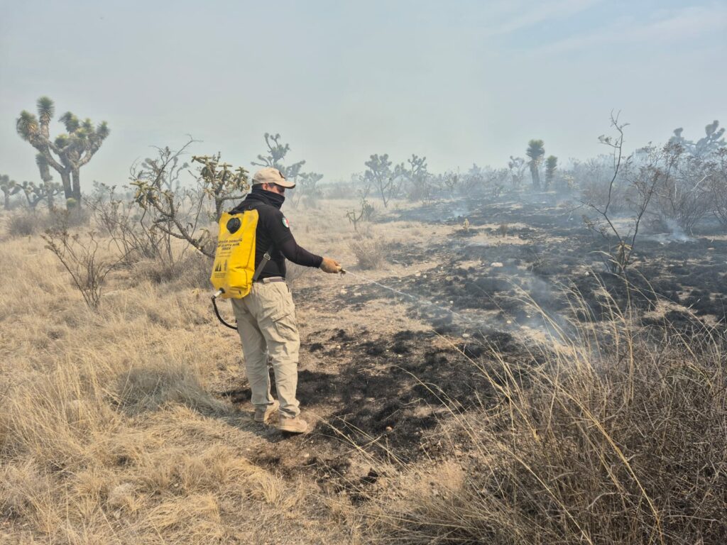 En el combate al fuego participan brigadas estatales en coordinación con la Comisión Nacional Forestal (CONAFOR), autoridades municipales y voluntarios, quienes realizan labores de ataque directo, apertura de brechas y acciones de contención para frenar la propagación del incendio.