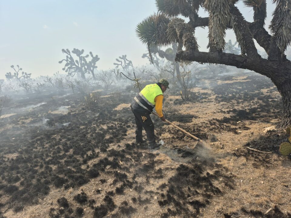 En el combate al fuego participan brigadas estatales en coordinación con la Comisión Nacional Forestal (CONAFOR), autoridades municipales y voluntarios, quienes realizan labores de ataque directo, apertura de brechas y acciones de contención para frenar la propagación del incendio.