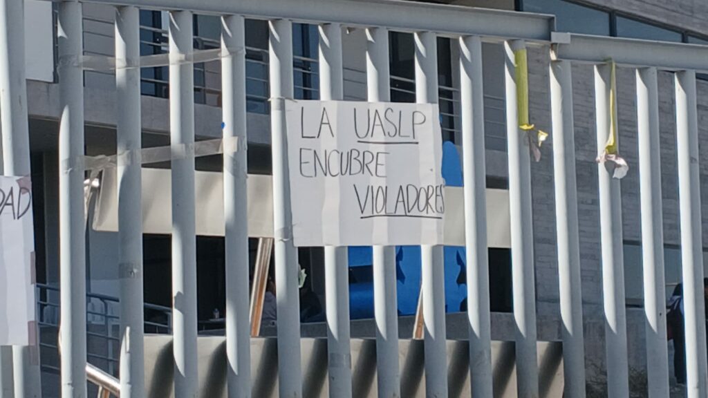 Alumnas y alumnos de la Facultad de Ciencias de la Universidad Autónoma de San Luis Potosí (UASLP), tomaron las instalaciones del plantel en protesta ante el caso de violencia que involucra a un profesor, a quien se acusa de haber agredido violentamente a una ex estudiante.