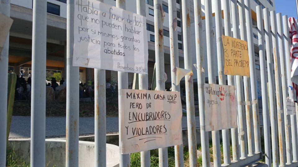 Alumnas y alumnos de la Facultad de Ciencias de la Universidad Autónoma de San Luis Potosí (UASLP), tomaron las instalaciones del plantel en protesta ante el caso de violencia que involucra a un profesor, a quien se acusa de haber agredido violentamente a una ex estudiante.