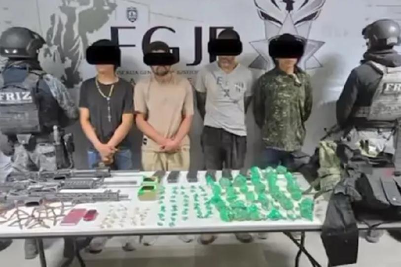 Entre los detenidos se encuentra Flavio Alberto N., de 38 años, señalado como jefe de plaza de una célula criminal con presencia en el municipio de Tabasco, Zacatecas. Junto a él fueron arrestados Alberto N., de 47 años; Claudio N., de 18; y Juan Carrera N., de 21, quienes habrían participado en el ataque contra el convoy de la Fuerza de Reacción Inmediata.