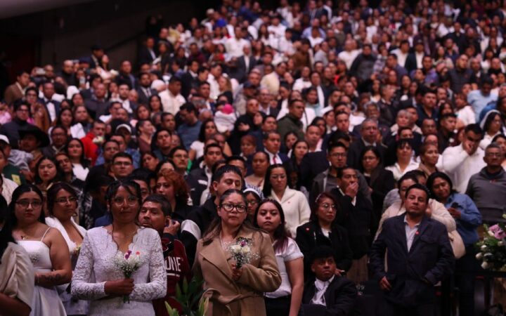 El recinto, habitualmente sede de conciertos y espectáculos, fue escenario de una ceremonia civil masiva que reunió a contrayentes, familiares y autoridades del Registro Civil. La jefa de Gobierno, Clara Brugada, acudió como testigo principal del acto.