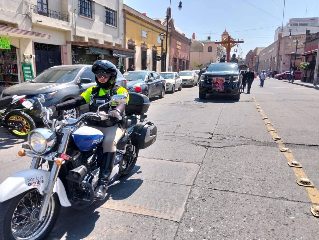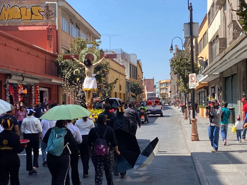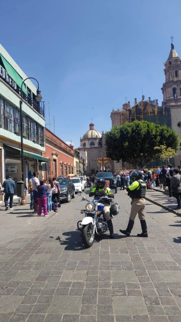 ubicada en el Centro Histórico, y concluyó en la Iglesia del Saucito. Durante el trayecto, elementos de la Policía Vial acompañaron y resguardaron a los participantes para asegurar el orden y la protección tanto de los contingentes como del público asistente.