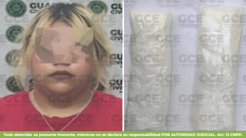 La detenida, identificada como Fátima “N”, de 25 años, fue sorprendida con dos envoltorios que contenían aproximadamente 308 gramos de cristal, los cuales pretendía introducir al área de visitas. El aseguramiento se realizó como parte de los protocolos especializados de revisión aplicados en los centros penitenciarios del estado.