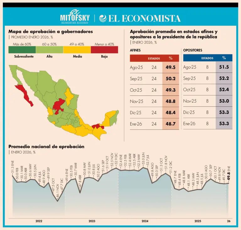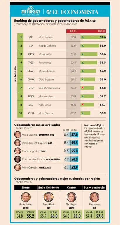 El Ranking Mitofsky es una medición periódica que evalúa la aprobación ciudadana de gobernadoras y gobernadores en el país.