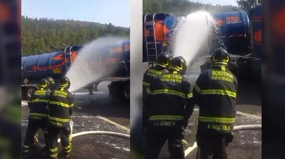 VIDEO | Se registra fuga de combustible de pipa sobre la México-Toluca; bomberos atienden derrame