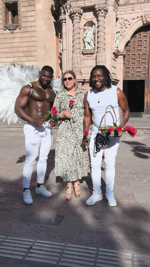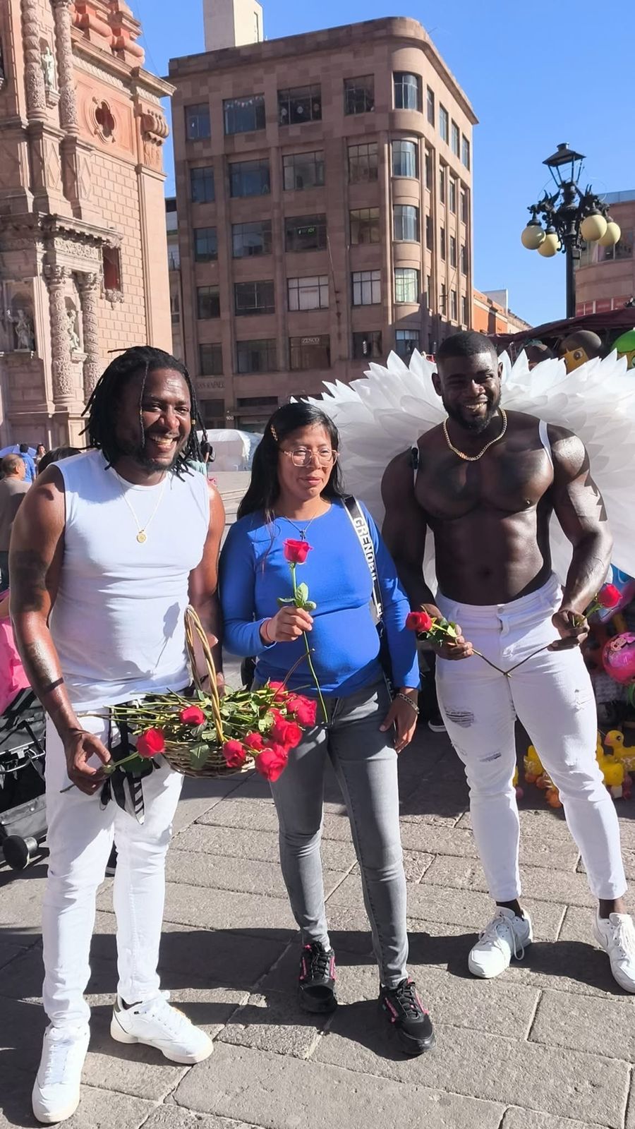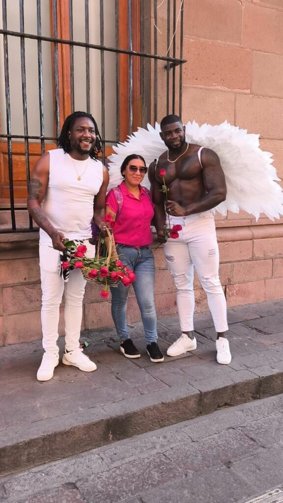 Ataviados de manera especial y con flores en mano, los jóvenes de gran físico atlético, sorprendieron a parejas, amistades, familias y comerciantes que disfrutaban del ambiente festivo en el corazón de la ciudad. Entre risas, abrazos y fotografías improvisadas, las flores se transformaron en pequeños símbolos de afecto que iluminaron la jornada.