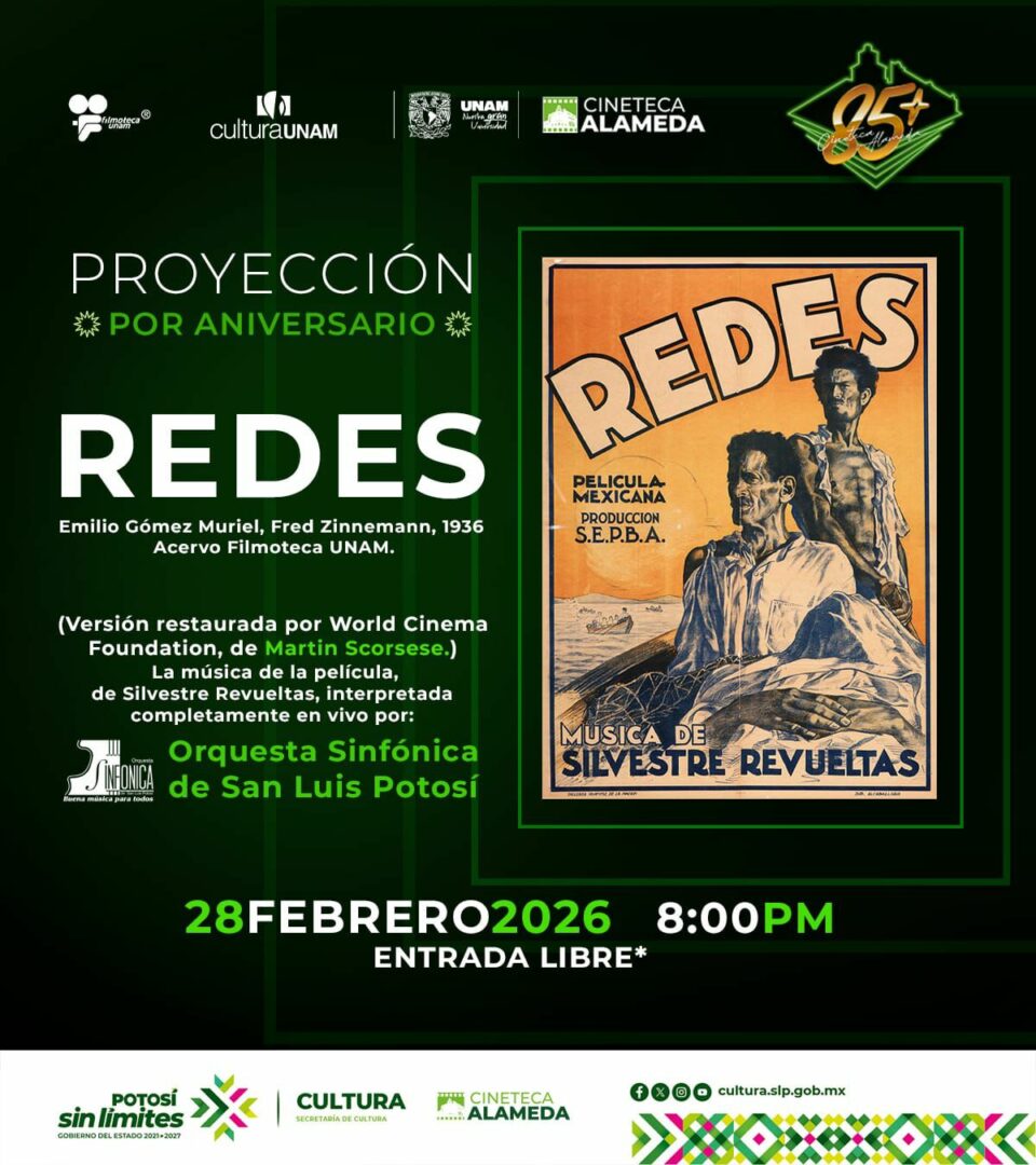 En el marco de su 85 aniversario, la Cineteca Alameda presentará una función especial del clásico mexicano Redes (1936), dirigida por el cineasta potosino Emilio Gómez Muriel. La proyección contará con entrada gratuita y se exhibirá en su versión restaurada por la World Cinema Foundation, iniciativa impulsada por el reconocido director Martin Scorsese para preservar obras fundamentales del cine mundial.