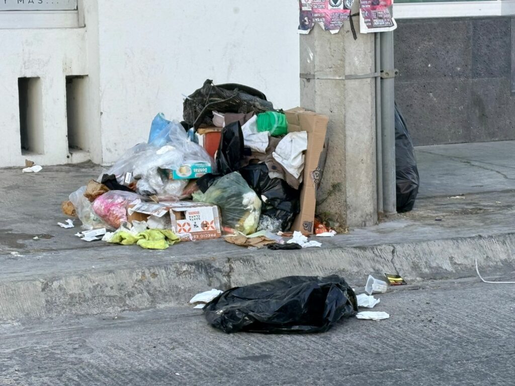 De acuerdo con los reportes ciudadanos, las bolsas de basura se encuentran expuestas sobre la vía pública, lo que además de generar una mala imagen urbana, provoca fuertes olores que afectan tanto a peatones como a comerciantes y empleados del sector.