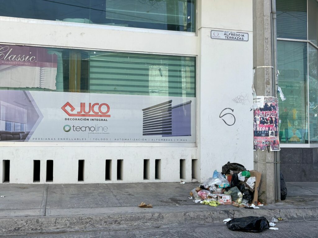 Vecinos y trabajadores de la zona han denunciado la acumulación de basura en la calle Alfredo M. Terrazas, donde señalan que los desechos permanecen durante varios días sin que sean retirados por el servicio de recolección municipal.