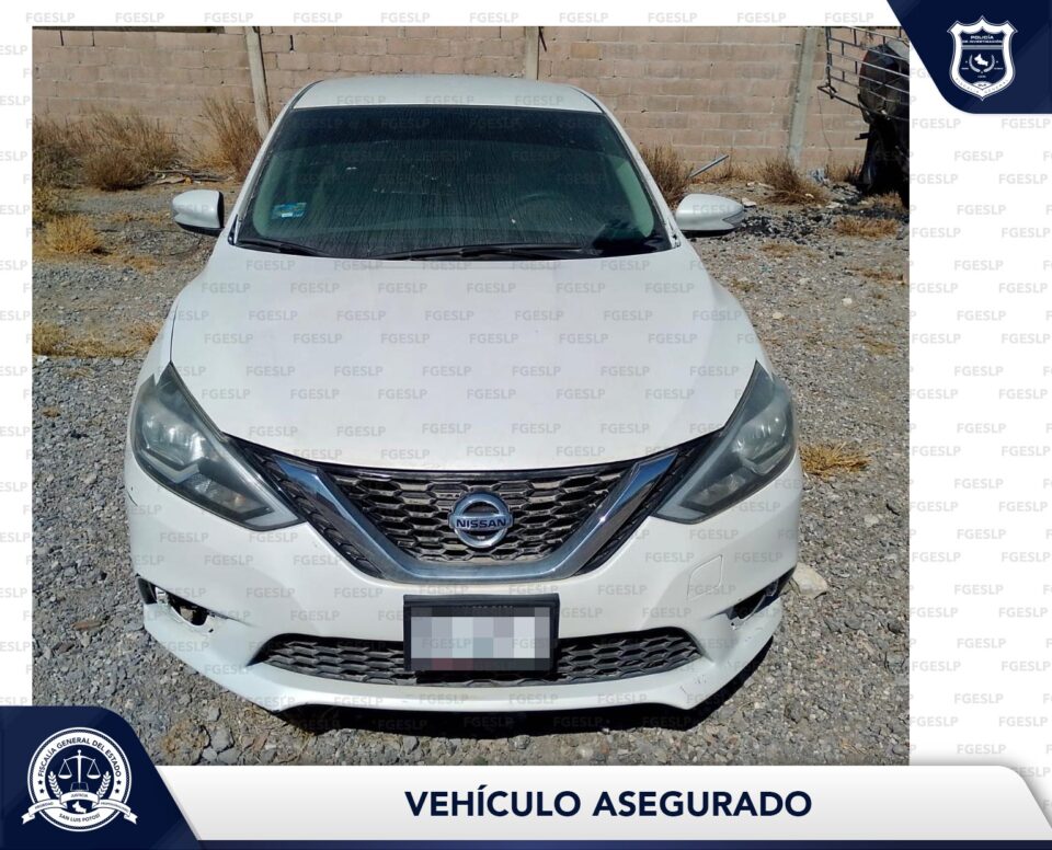 La unidad asegurada es un Nissan Sentra modelo 2018, color blanco, que contaba con reporte de robo desde el 10 de mayo de 2023, según registros oficiales.