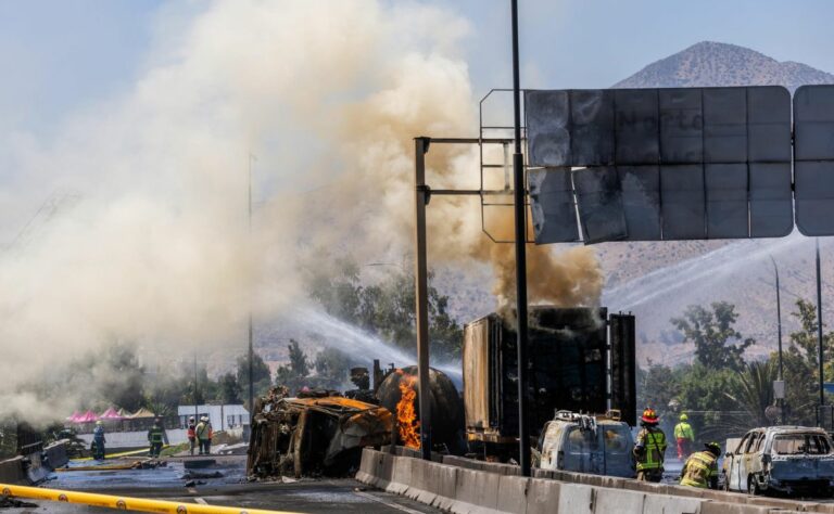 La explosión sucedió en la intersección de la autopista más importante del país, la Ruta 5, con una secundaria y generó un gran incendio que alcanzó a otros siete vehículos, que a la misma hora iban transitando por la autopista, y también un desguace de vehículos, informó la policía chilena.