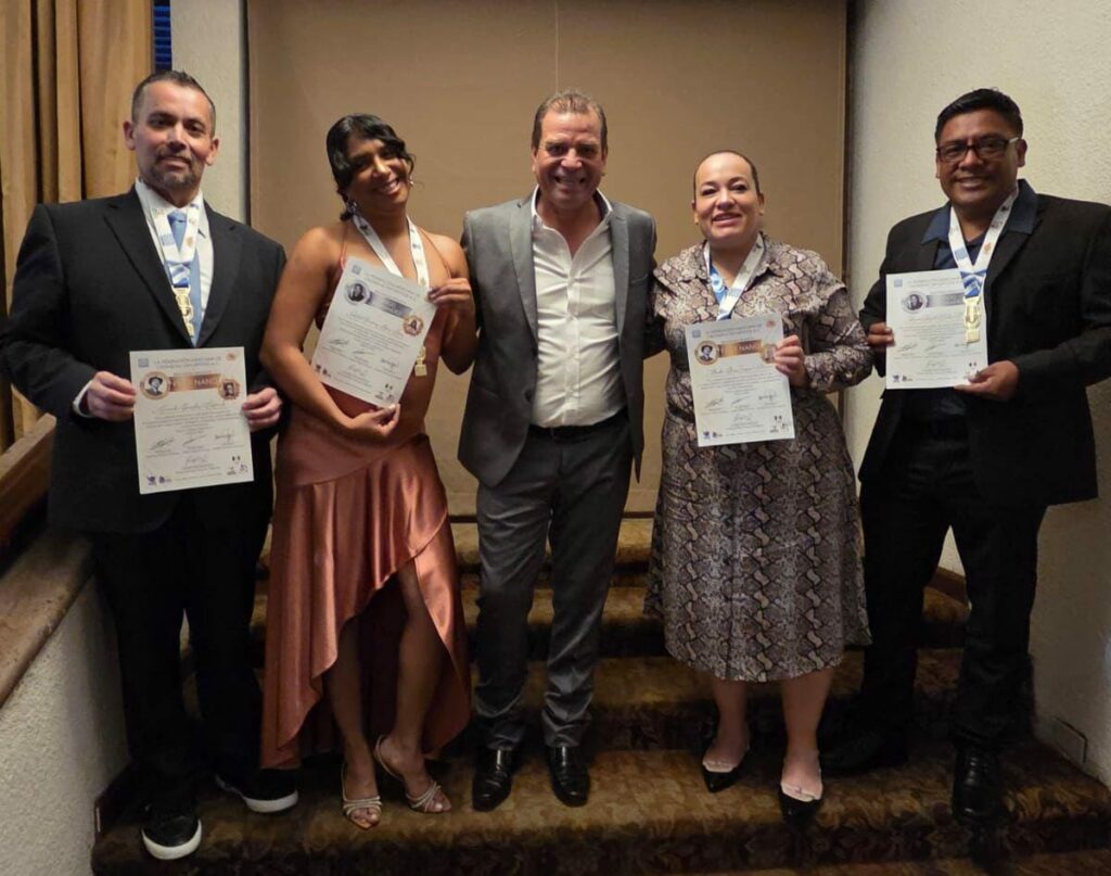 Recibiéndo los mencionados galardones las y los cronistas deportivos de San Luis Potosí: Martha Elena Zaragoza Valtierra, Alied López, Everardo González Castanedo y Ángel Cardona.