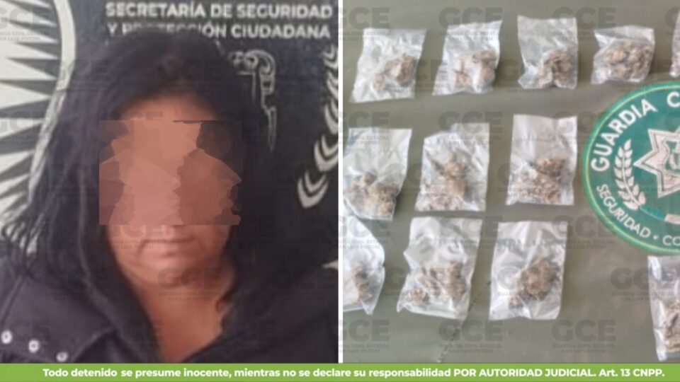 Sobre la calle Ignacio Comonfort, en Santa María del Río, un menor de 17 años quedó detenido, luego de encontrarle nueve dosis de la droga sintética conocida como “cristal”, manifestando ser distribuidor de estupefacientes al menudeo en la zona. Por otra parte, en la calle de Reforma y Bravo en la colonia Rivas Guillén en el Municipio de Matehuala fue arrestada Gabriela N. de 36 años de edad, por presunta posesión de 20 dosis de hierba seca en color verde al parecer marihuana.