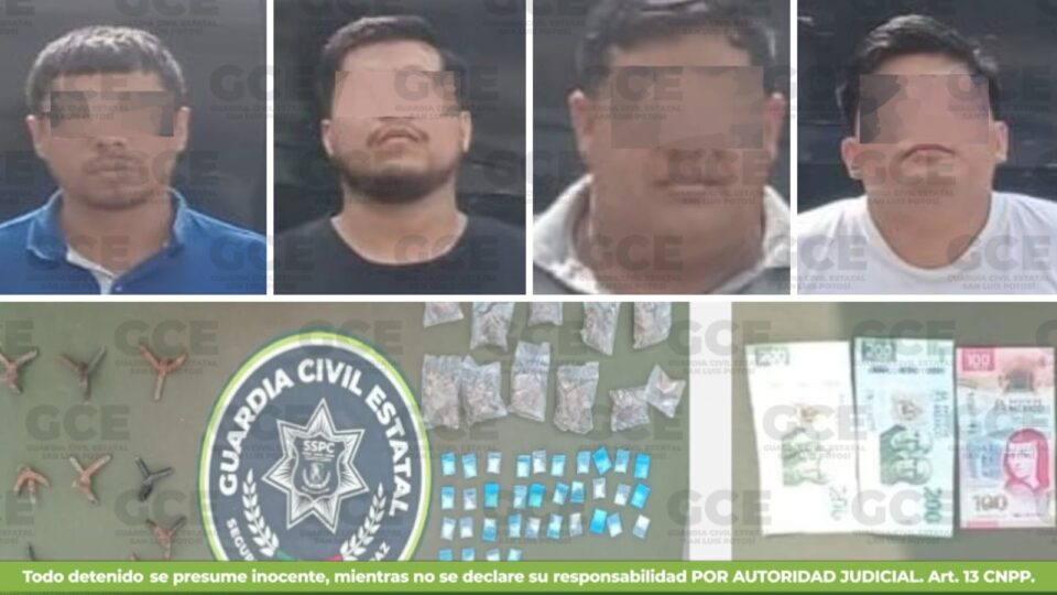 Ciudad Valles, S.L.P.- En el marco del operativo de acción “Huasteca Segura”, dispuesto por la Guardia Civil del Estado (GCE), luego de tareas de inteligencia y mediante recorridos de seguridad y vigilancia, fueron detenidos cuatro hombres que presuntamente forman parte de una célula criminal.