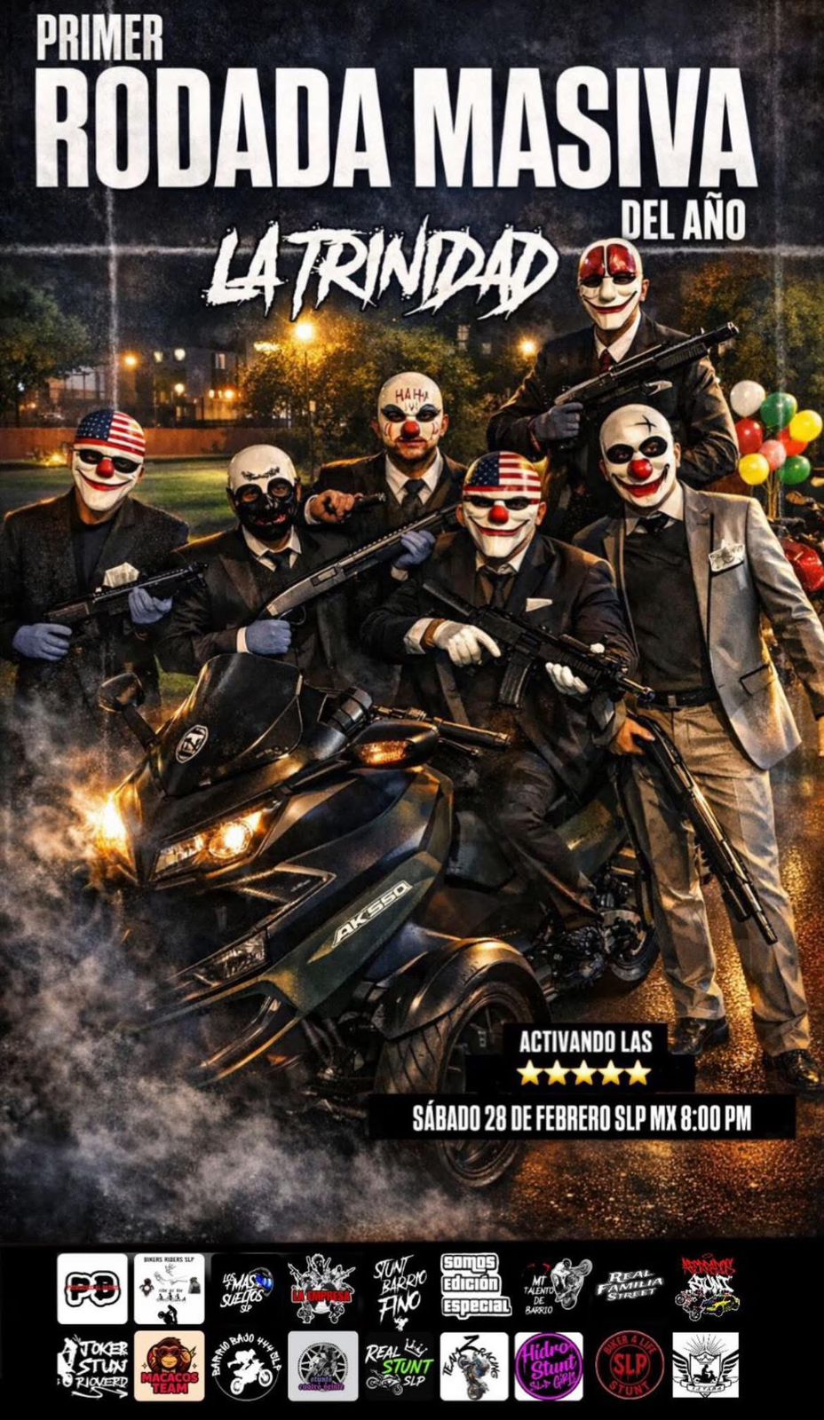 En redes sociales comenzó a circular la convocatoria para la denominada “Primer Rodada Masiva del Año”, programada para el sábado 28 de febrero por la noche. De acuerdo con la invitación, la concentración está prevista a las 20:00 horas y la salida a las 21:00, desde un punto que será revelado un día antes.